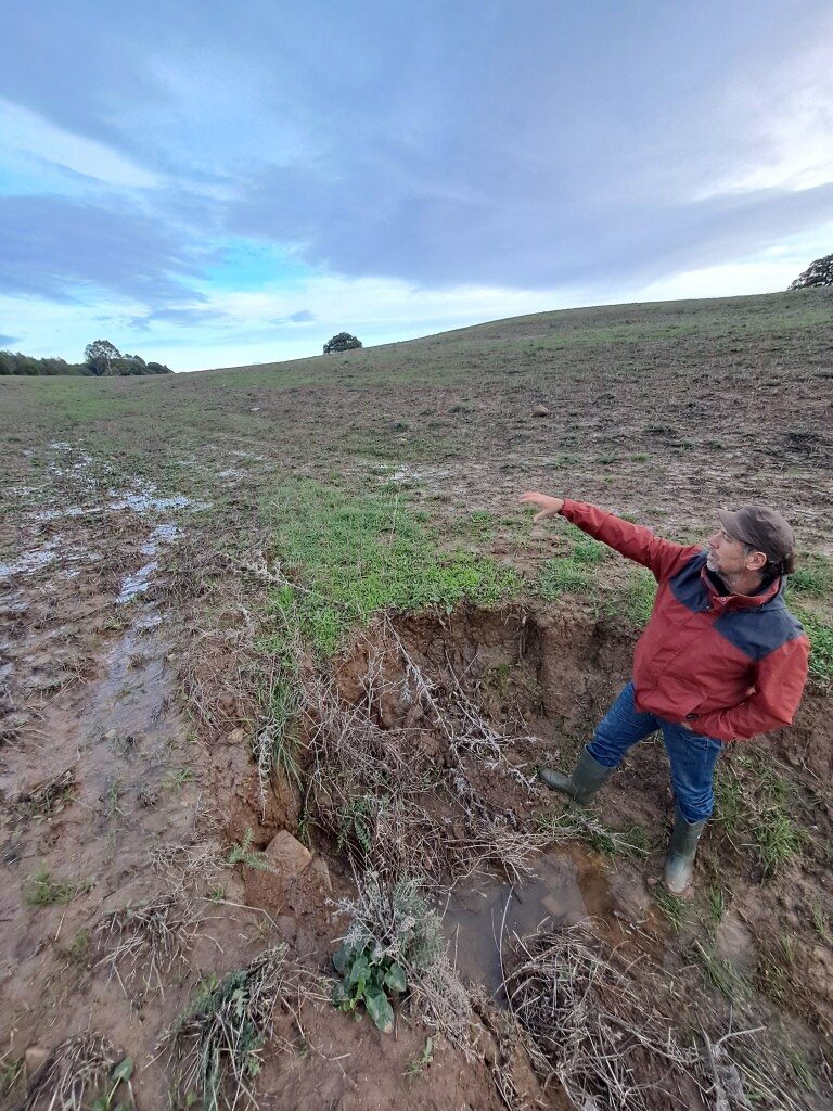 Las lluvias intensas nos obligaron, literalmente, a comprar botas altas de agua para poder recorrer la finca. Barro, encharcamientos, escorrentías activas y suelos saturados nos ofrecieron una oportunidad excepcional: observar el sistema en uno de sus momentos más críticos y reveladores.
